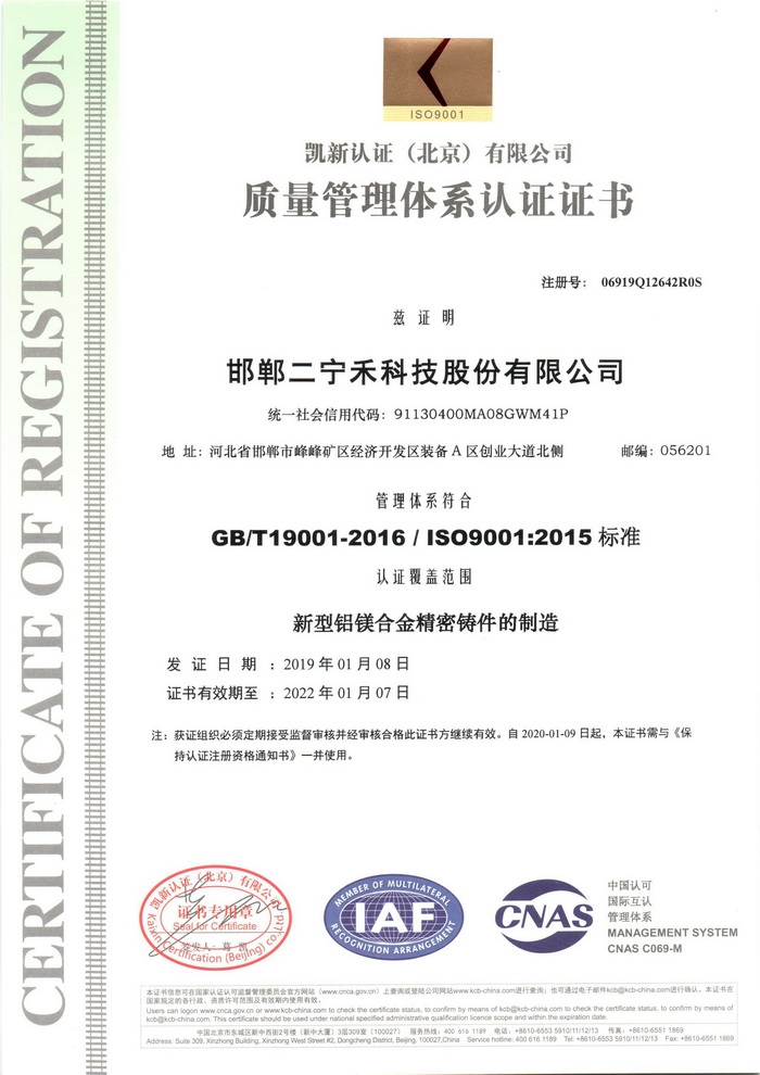 質(zhì)量管理體系認(rèn)證證書